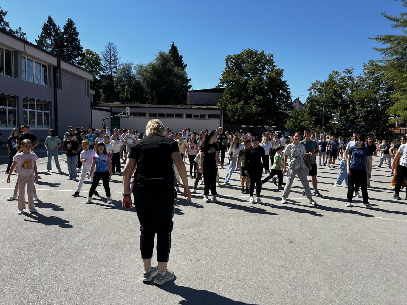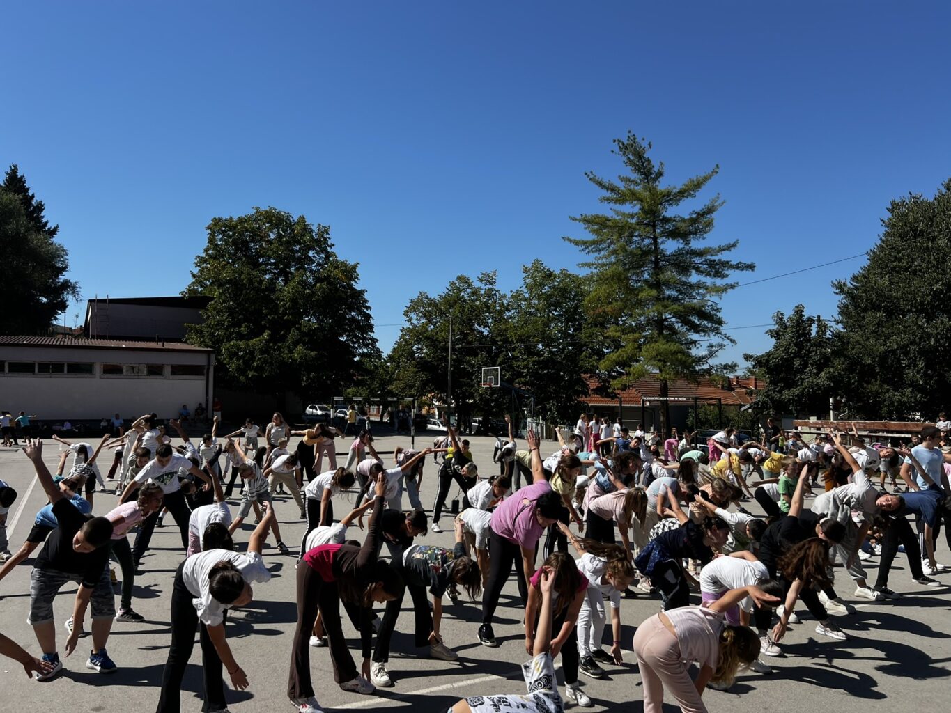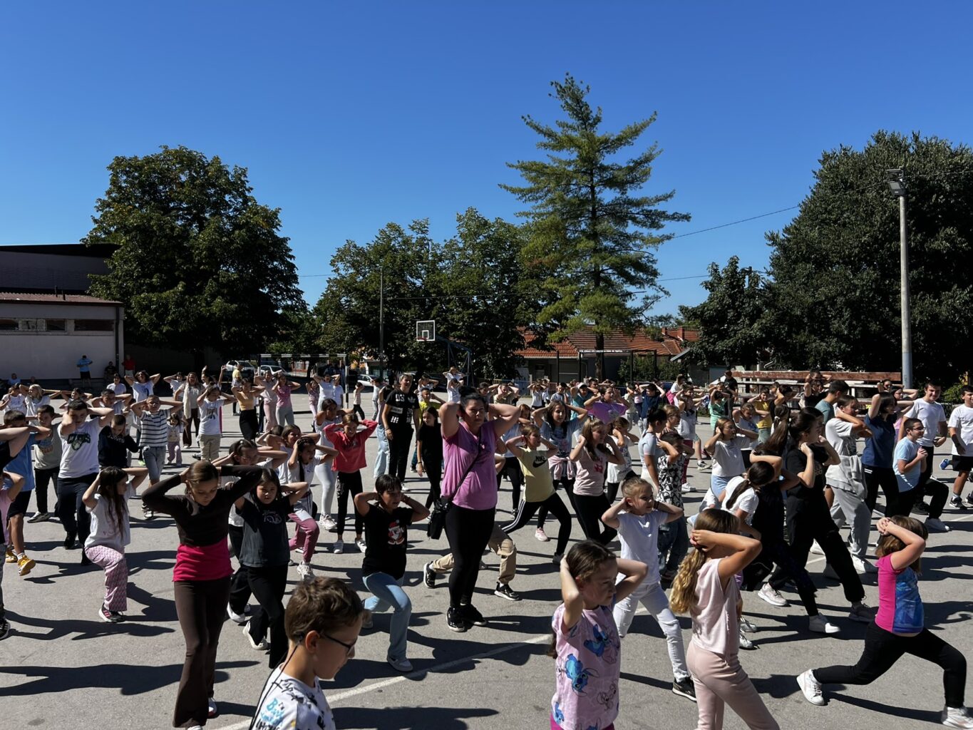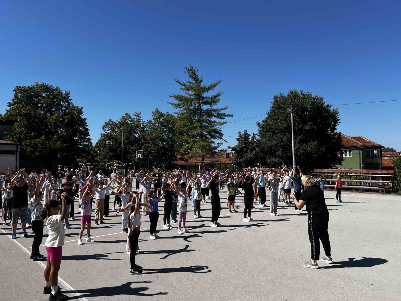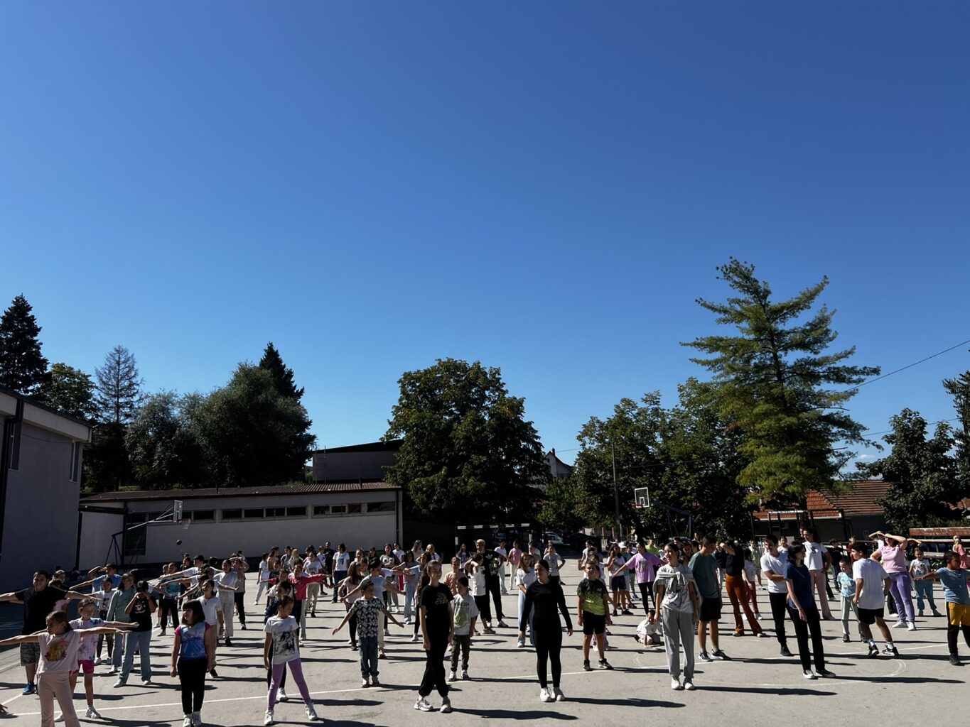 У школском дворишту одржане спортске активности – од игре и вежби за најмлађе, до заједничког загревања уз музику.