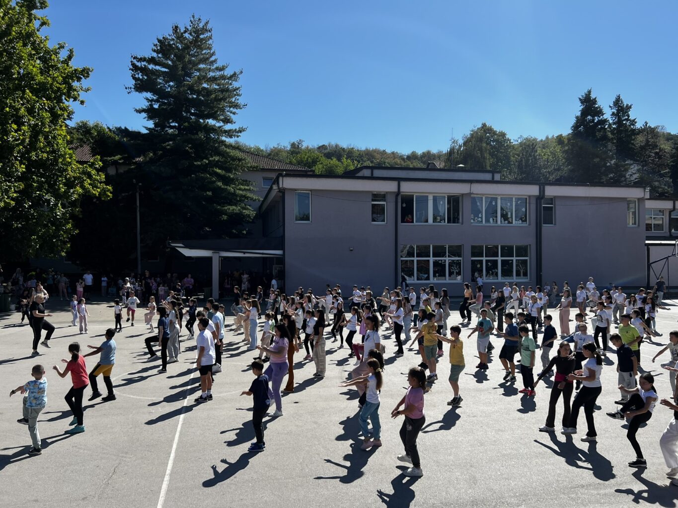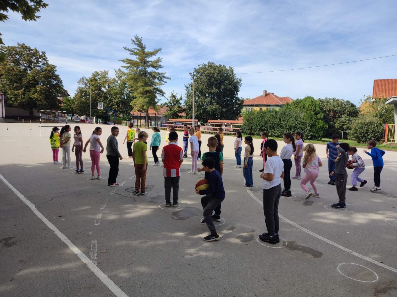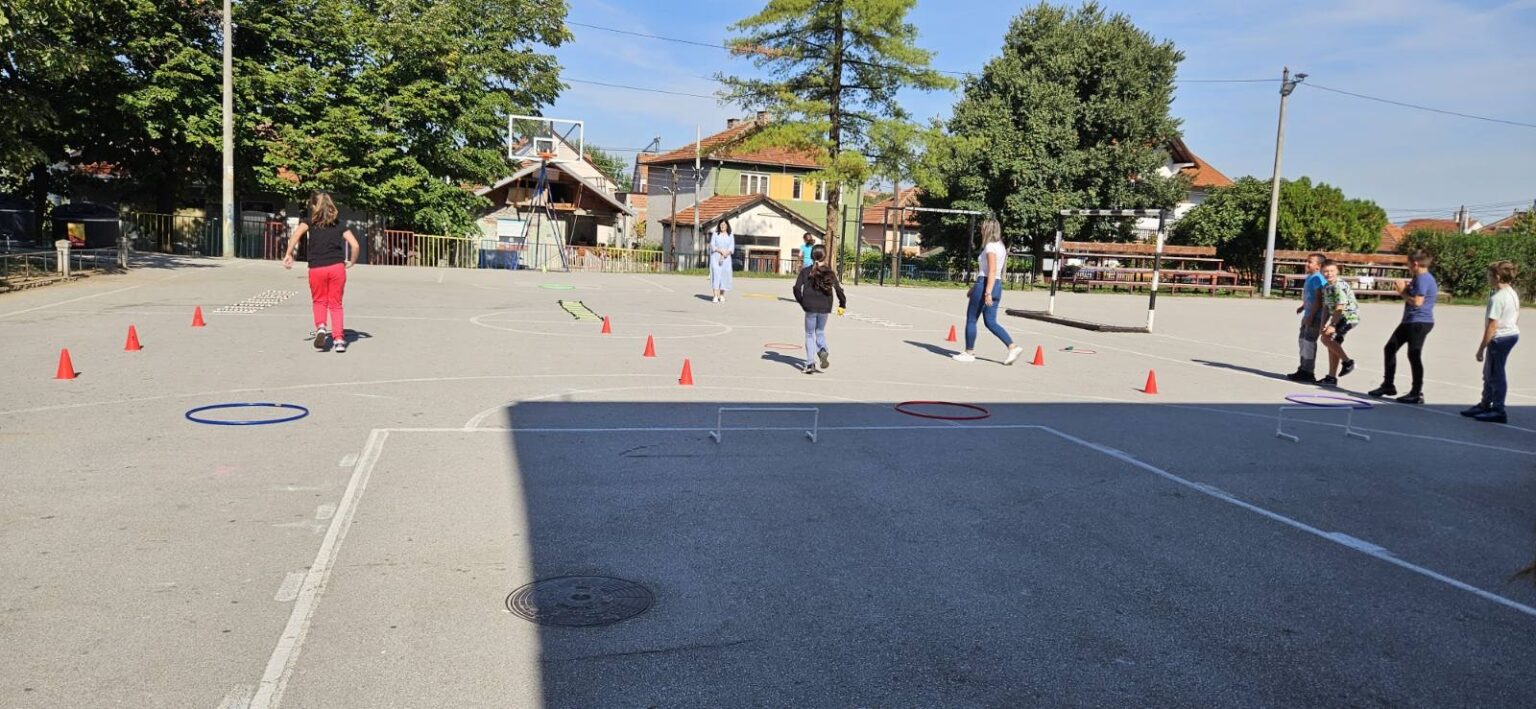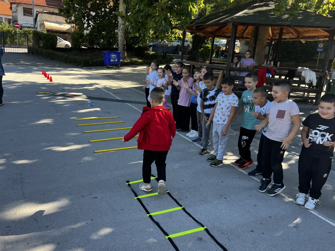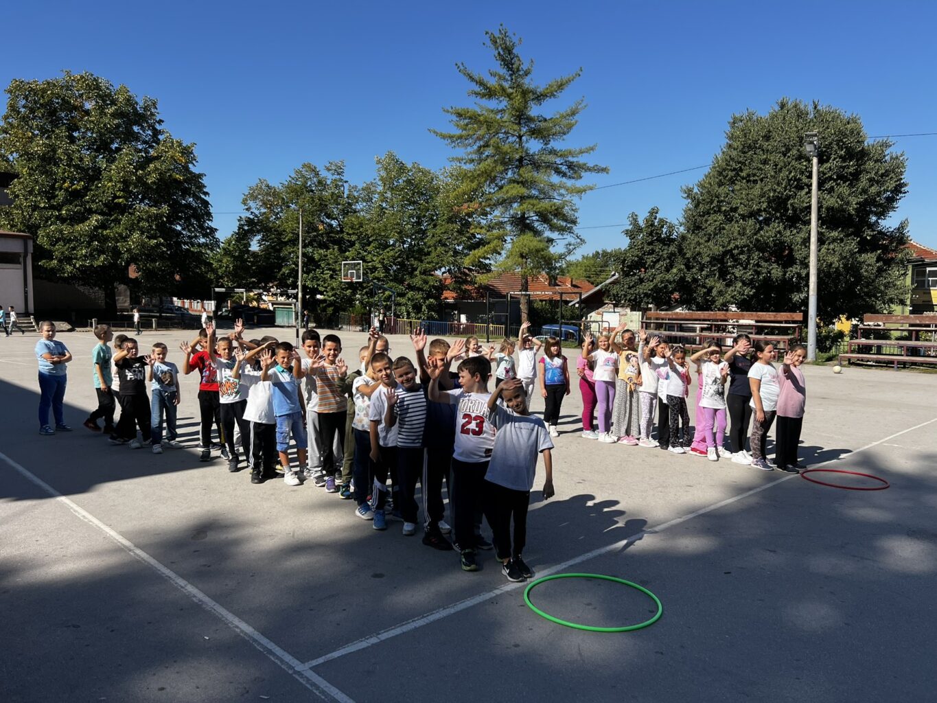 У школском дворишту одржане спортске активности – од игре и вежби за најмлађе, до заједничког загревања уз музику.