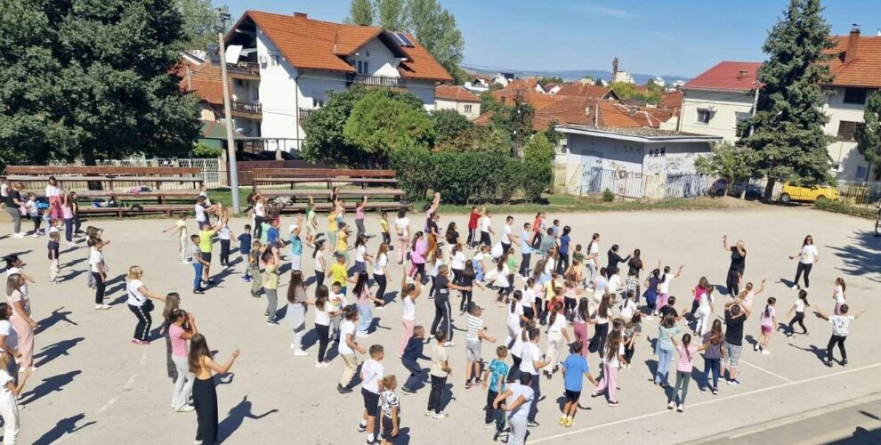 У школском дворишту одржане спортске активности – од игре и вежби за најмлађе, до заједничког загревања уз музику.
