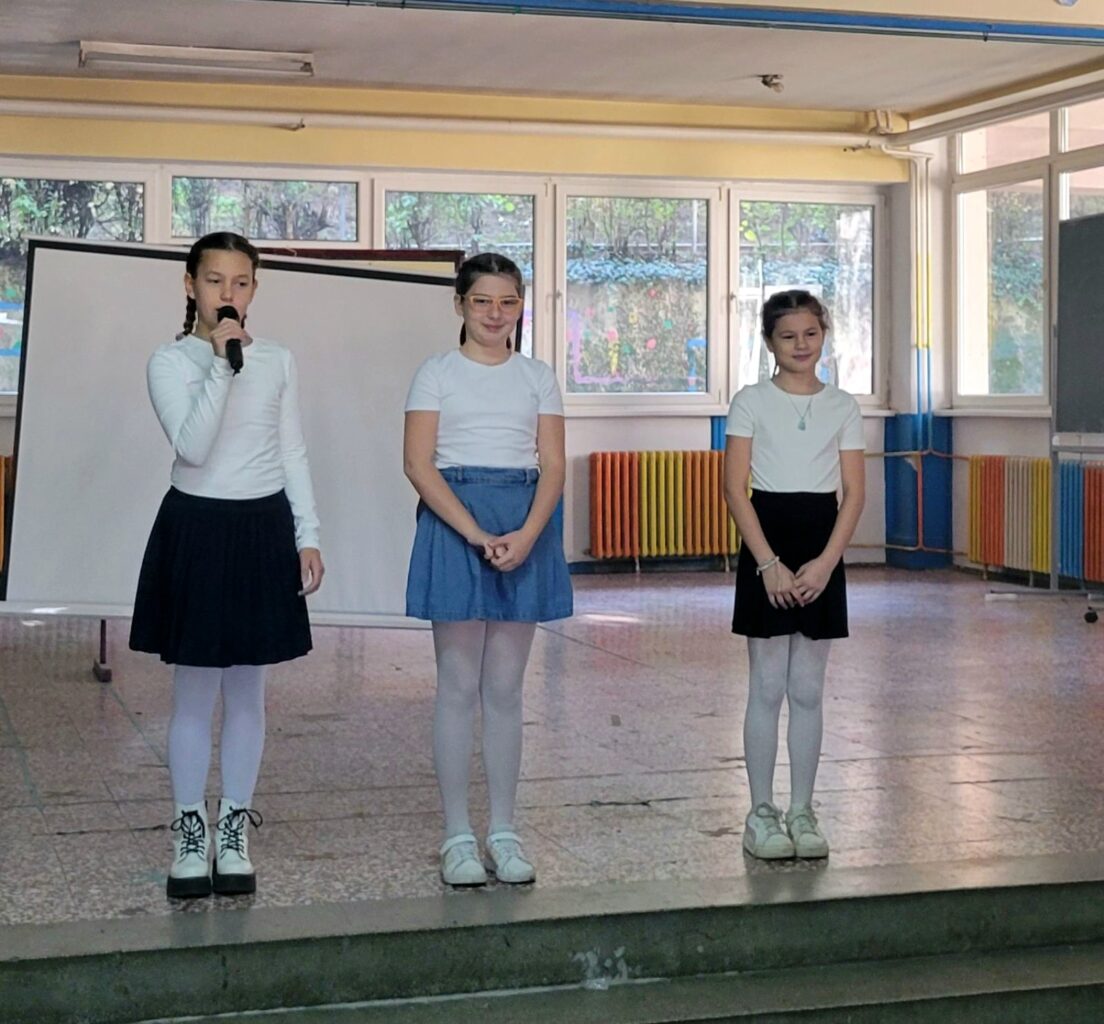 У склопу Дечије недеље, под слоганом „Имам права да се играм, да се смејем, маштам, стварам – и у бољи свет претварам!“, као добродошлица првацима у Дечији савез, у четвртак, 9. 10. 2025. године, одржана је приредба, коју су припремили ученици четвртог разреда са својим учитељицама.