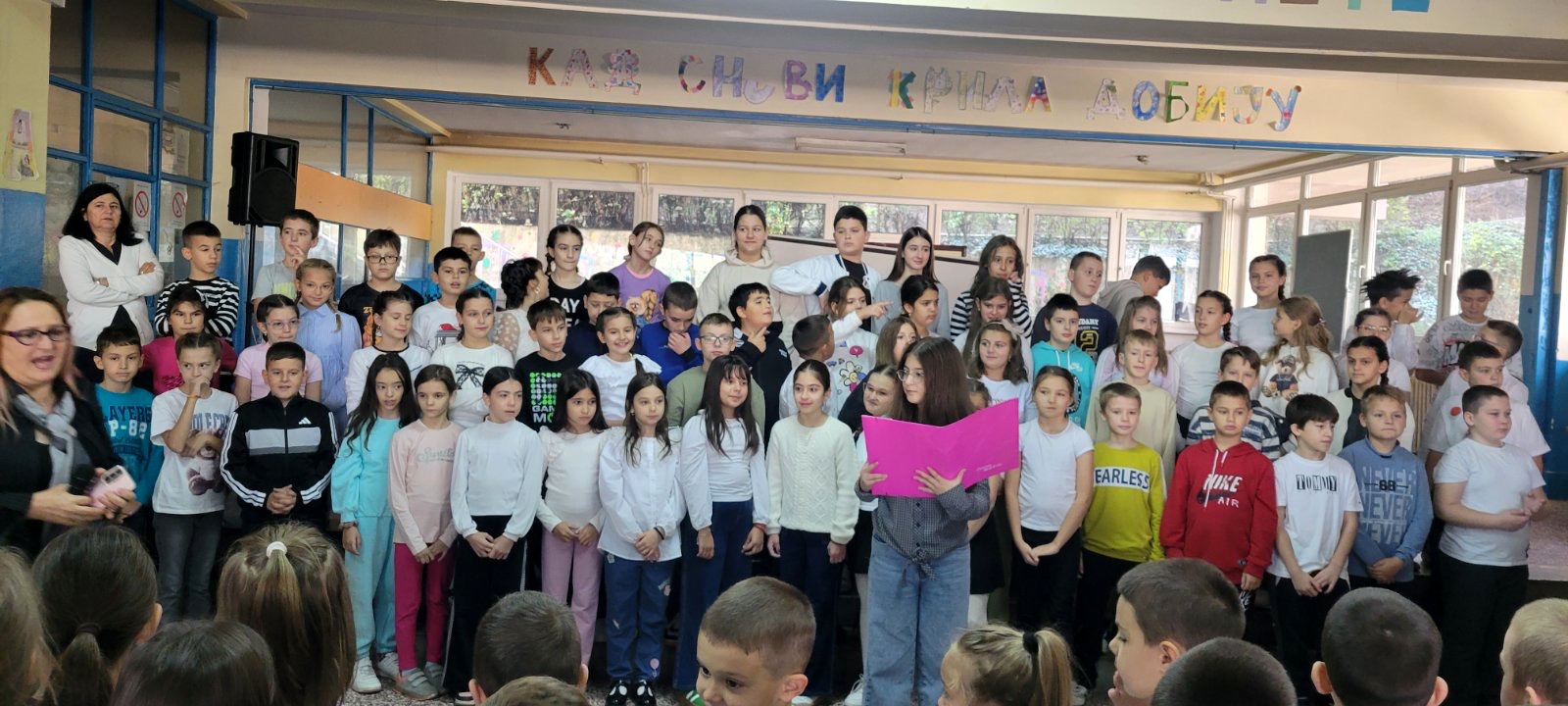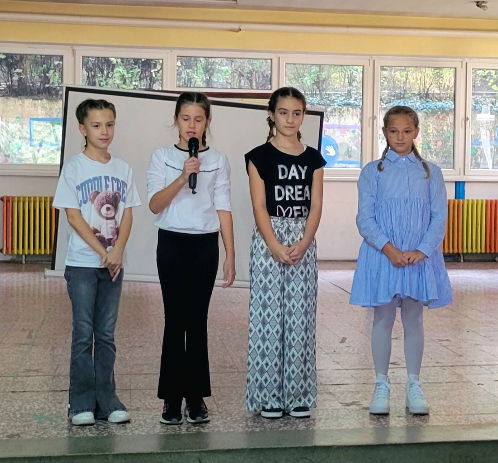 У склопу Дечије недеље, под слоганом „Имам права да се играм, да се смејем, маштам, стварам – и у бољи свет претварам!“, као добродошлица првацима у Дечији савез, у четвртак, 9. 10. 2025. године, одржана је приредба, коју су припремили ученици четвртог разреда са својим учитељицама.